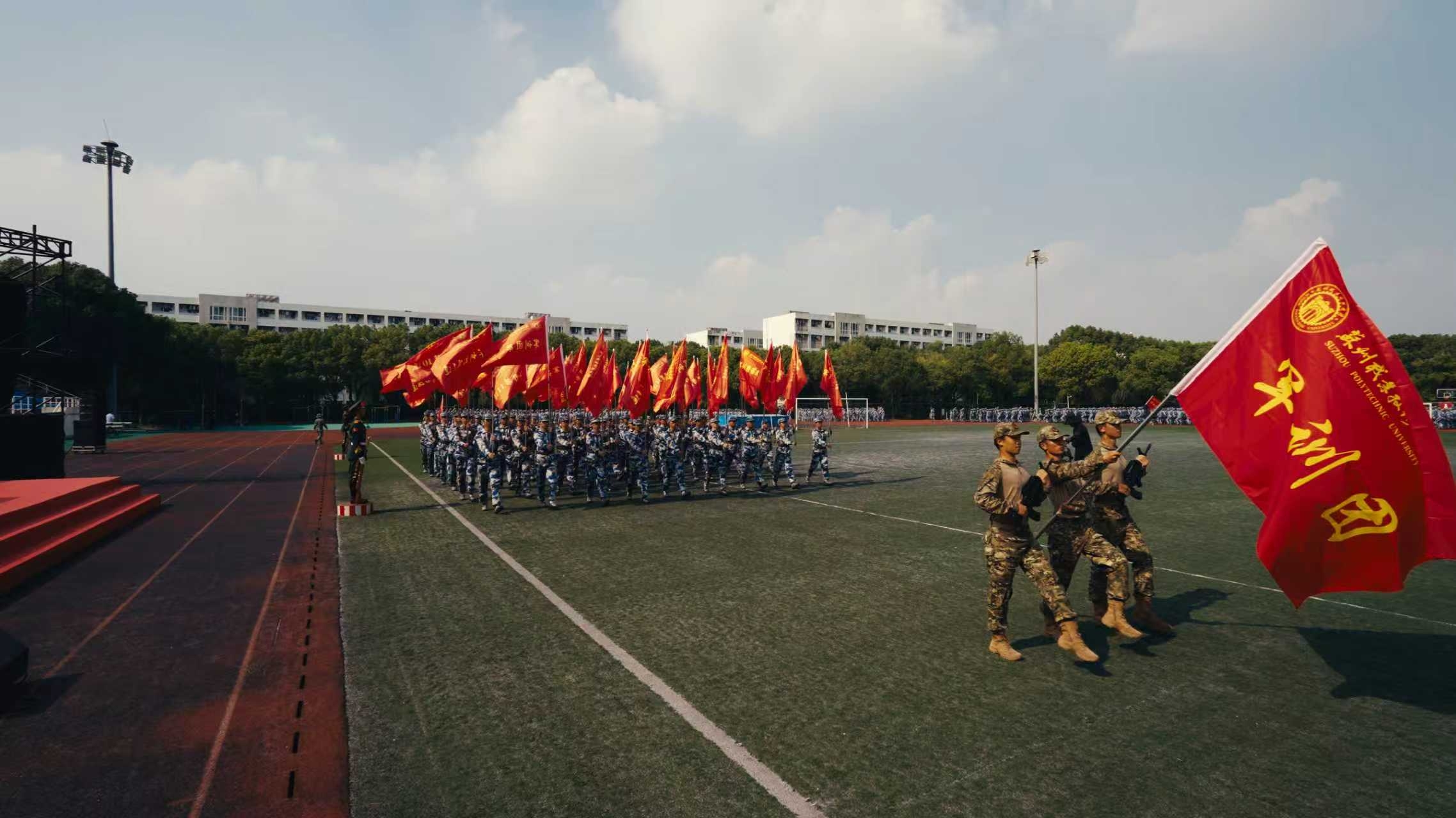 本次军训为期14天,由驻苏73049部队承训,4名退役大学生士兵担任助理教官,延续了学校“军校协同、以训育人”的优良传统。训练内容涵盖队列、战术与国防教育等科目,并结合职业教育特色融入团队协作与职业素养训练。军训期间,学校同步开展“青盾行动”公共安全教育,组织消防演练、防范电信网络诈骗、禁毒拒毒宣传等活动,全面增强学生安全意识。这堂生动的“大学第一课”,不仅锻炼了学生的体魄与意志,也为他们即将开启的大学生涯奠定了坚实基础。
